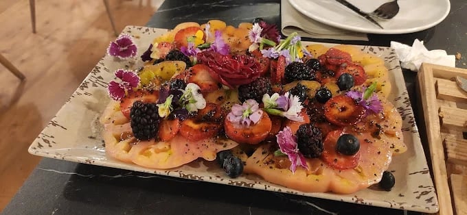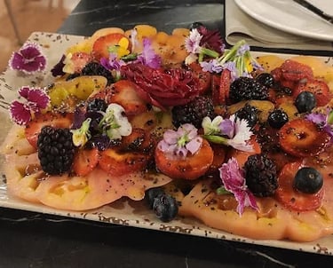 Sumérgete en una explosión de frescura y sabor con nuestra exquisita Ensalada de Tomate y Frutos Rojos. Este plato, meticulosamente elaborado, combina la jugosidad y dulzura de los tomates maduros con la acidez vibrante de los frutos rojos seleccionados cuidadosamente.